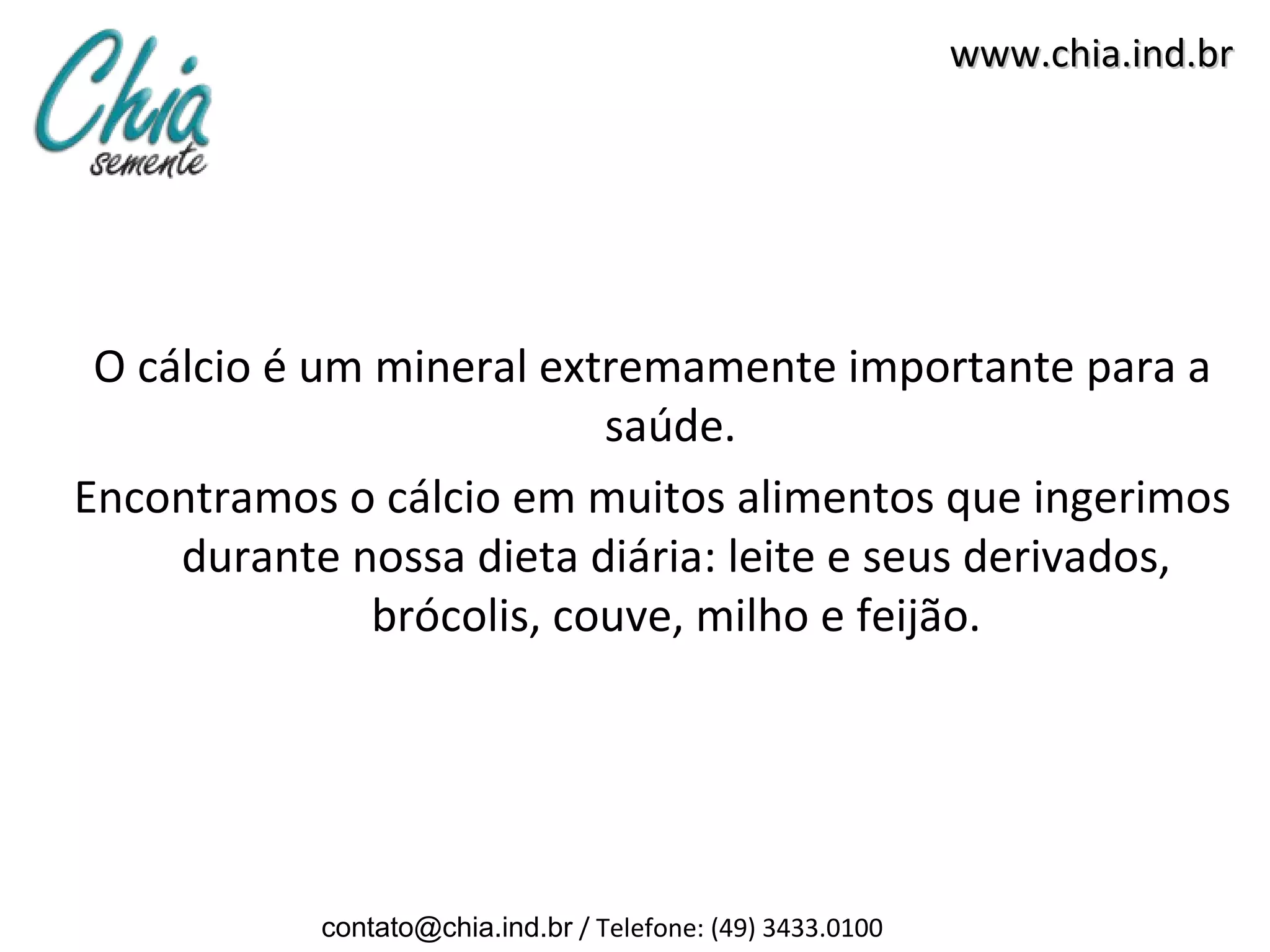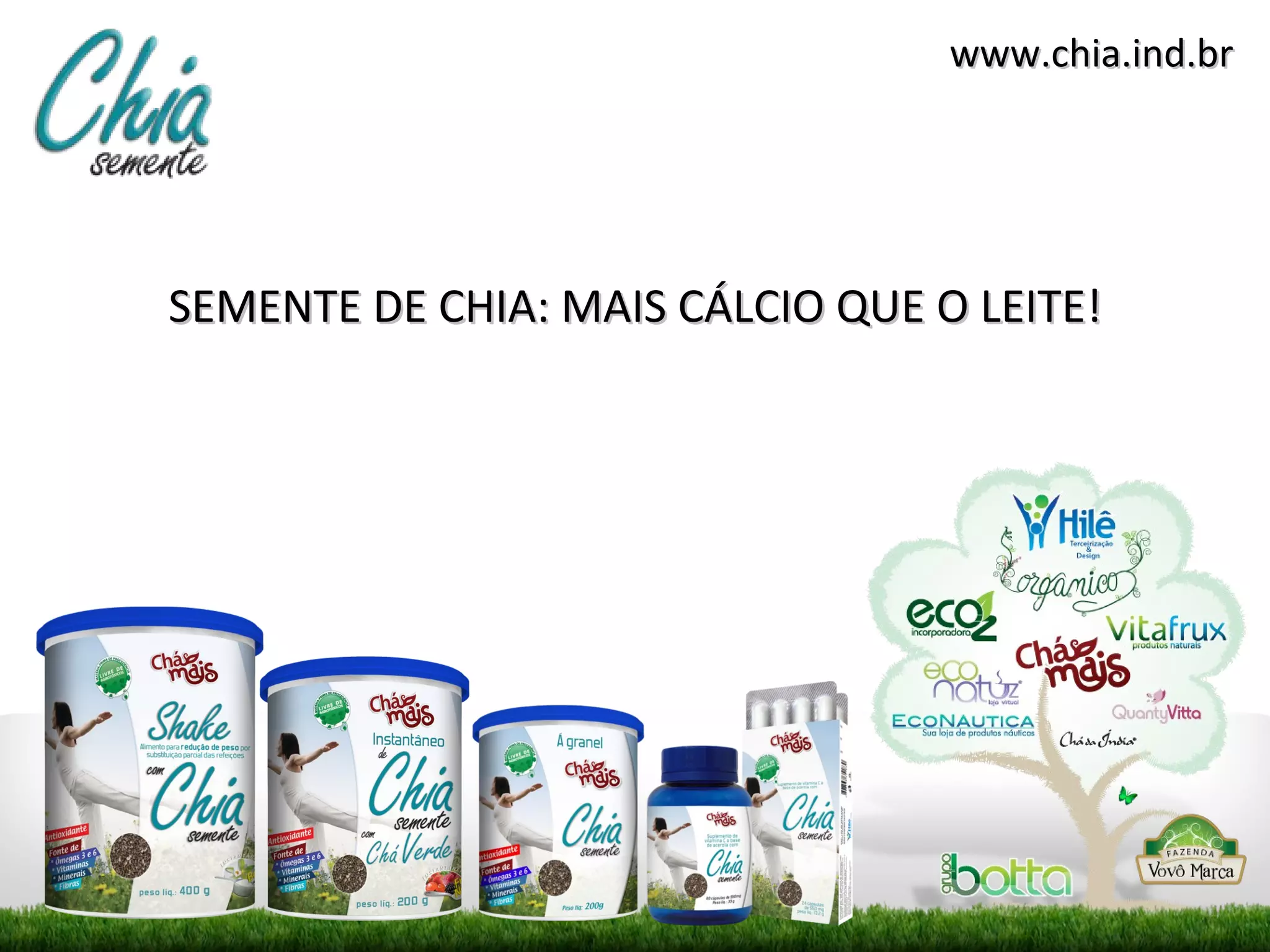 A semente de chia contém mais cálcio do que o leite, sendo importante para a saúde óssea. Além disso, a chia emagrece e fornece outros benefícios quando consumida diariamente. O documento promove a semente de chia e indica onde encontrá-la à venda.