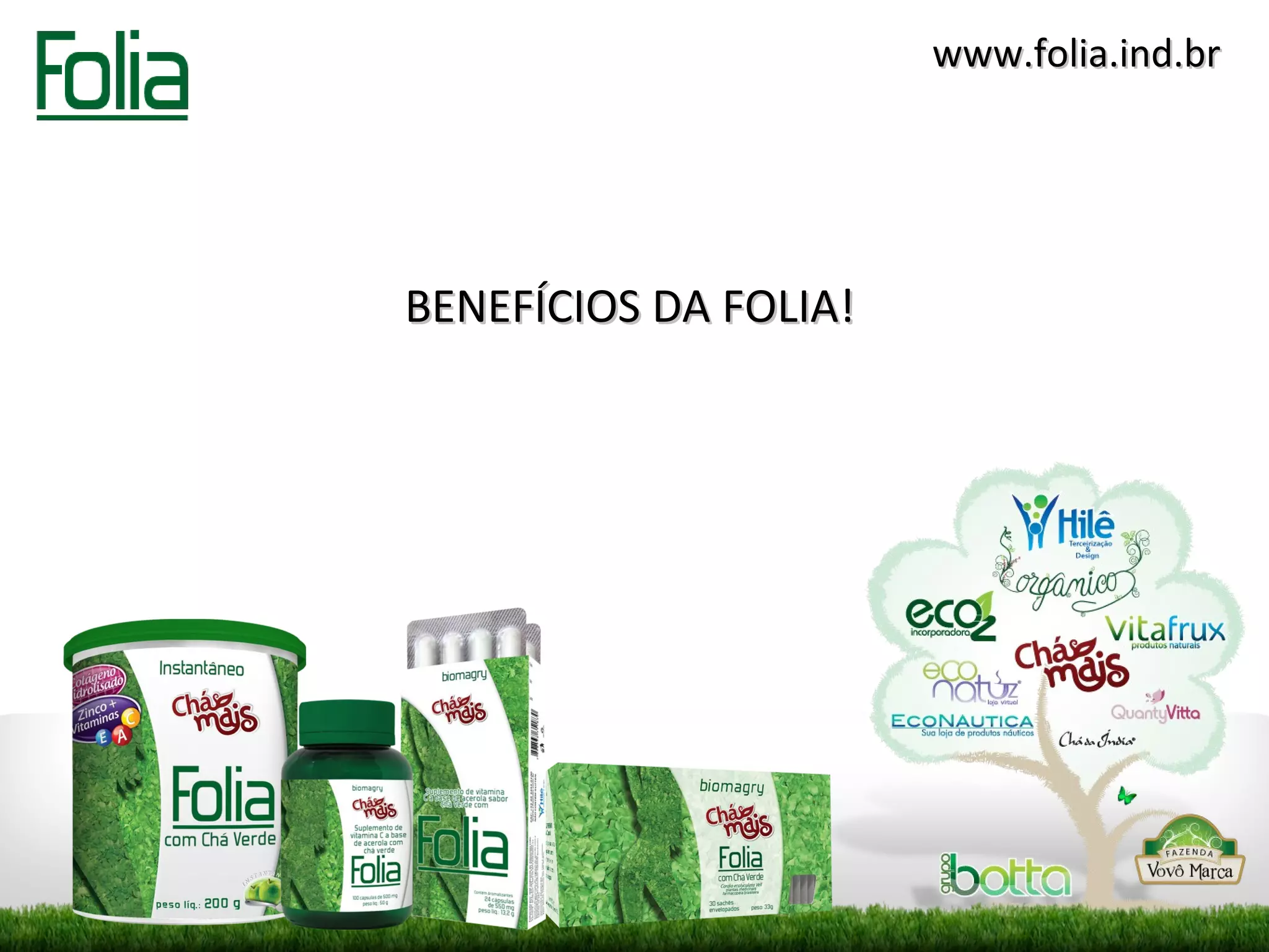 O documento lista os benefícios da folia magra, incluindo ação antioxidante, prevenção da retenção de líquidos, auxílio na perda de peso e redução da gordura abdominal. Também convida o leitor a aprender mais sobre os benefícios da folia em seu site.