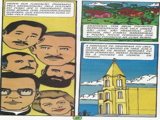 1) O documento descreve a bandeira e o brasão de Araripaca, incluindo as cores e símbolos que representam a história e economia da cidade.
