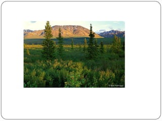 A taiga é o maior bioma de florestas boreais do mundo, estendendo-se por 4.800 km através do norte da Ásia, Europa e América do Norte. A vegetação é composta principalmente de coníferas como abetos e pinheiros, que são adaptadas ao clima subártico rigoroso. A fauna inclui animais como alces, renas, ursos e lobos que também desenvolveram adaptações para sobreviver às baixas temperaturas.