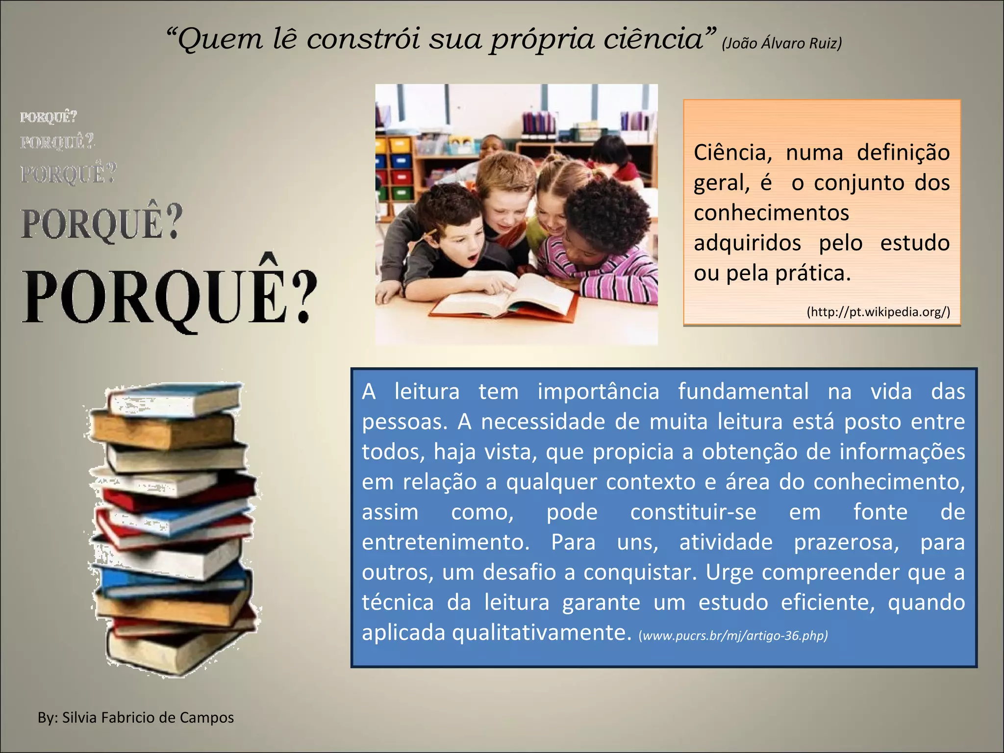 A leitura é fundamental para adquirir conhecimento e construir sua própria ciência, já que proporciona informações sobre qualquer área e contexto e pode ser uma fonte de entretenimento ou desafio, dependendo da pessoa. A técnica da leitura garante um estudo eficiente quando aplicada corretamente.