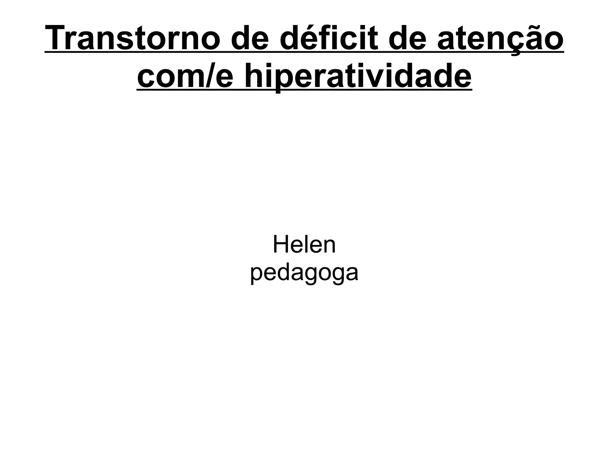 O documento discute o Transtorno de Déficit de Atenção com Hiperatividade (TDAH), definindo-o como um transtorno neurobiológico caracterizado por desatenção, inquietação e impulsividade. Ele descreve os três tipos de TDAH e seus sintomas, e discute quem é mais propenso, suas consequências, como diagnosticá-lo e tratá-lo, com foco no papel da escola e no uso de atividades lúdicas.