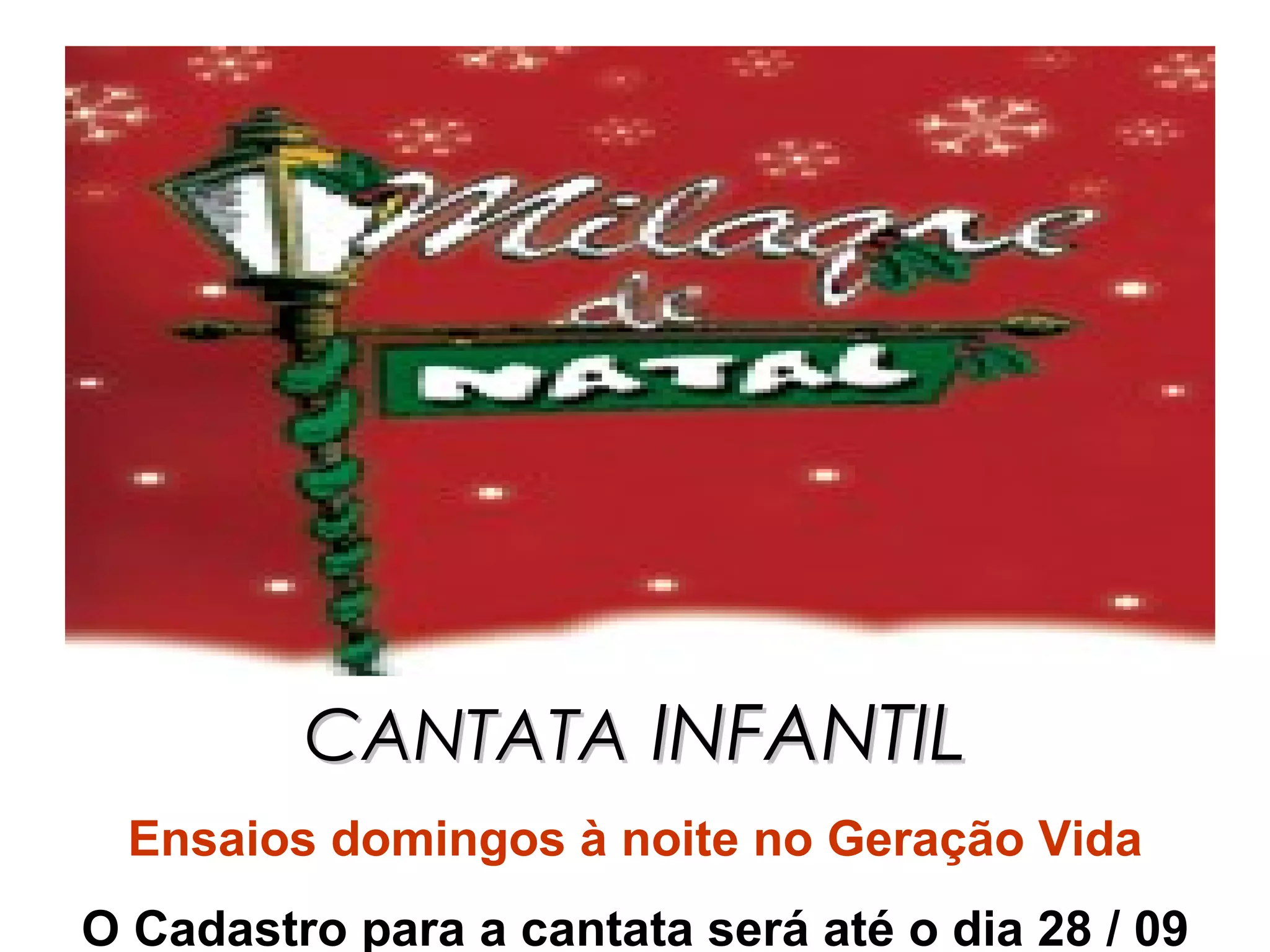 Ensaios para uma cantata infantil ocorrem aos domingos à noite na igreja Geração Vida, com inscrições abertas até 28 de setembro.