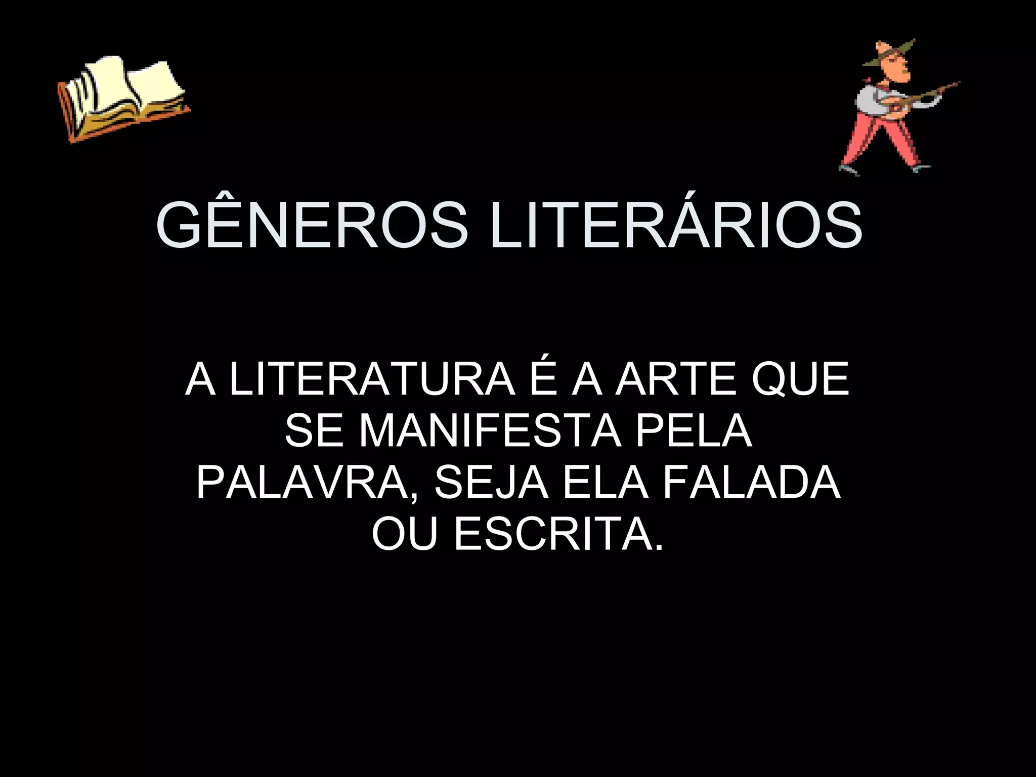 O documento resume os principais gêneros literários da Antiguidade Clássica: o gênero lírico, dramático e épico. O gênero lírico expressa sentimentos pessoais através da figura do "eu lírico". O gênero dramático inclui a tragédia, comédia e outros, destinados à representação teatral. O gênero épico engloba narrativas épicas como a Ilíada e Odisséia.