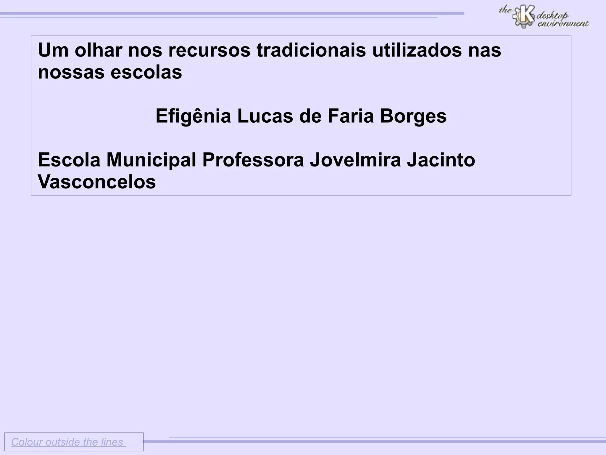 O documento discute ferramentas tradicionais usadas na educação, como livros didáticos e organização de salas de aula em fileiras, e como um recurso específico, os mapas, ainda são essenciais para ensinar cartografia, especialmente em aulas de Geografia e História.