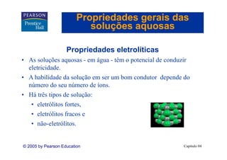 Este capítulo discute propriedades de soluções aquosas, incluindo: