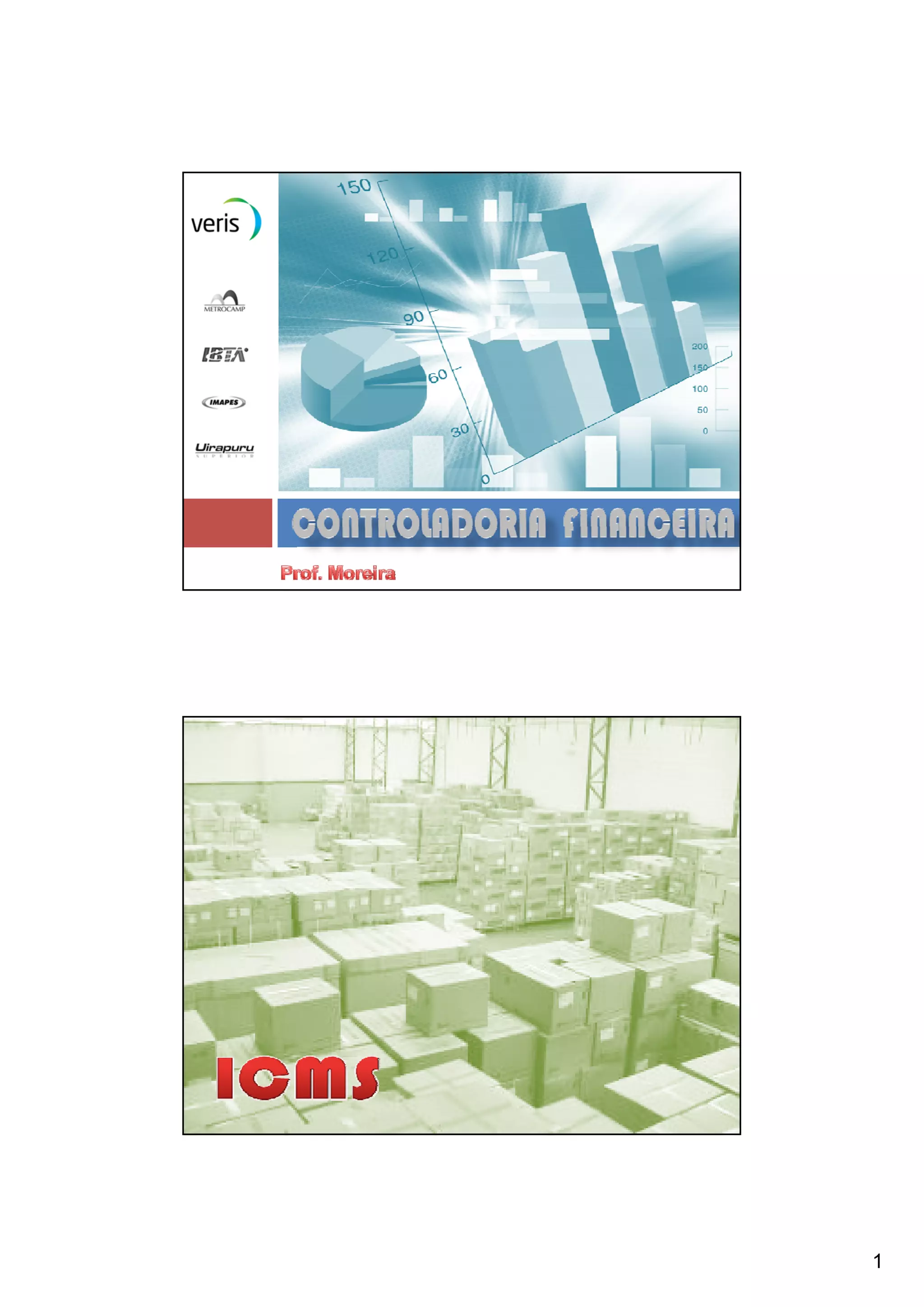 O documento discute o Imposto sobre Circulação de Mercadorias e Serviços (ICMS), explicando: 1) Seu campo de incidência inclui energia elétrica; 2) Como calcular o valor com ICMS incluso para venda de um produto; 3) A apuração e vencimento do imposto de forma mensal conforme o código da atividade econômica.