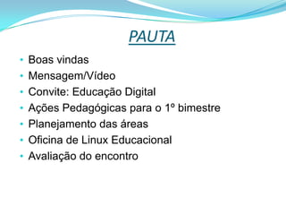 (1) O documento descreve uma reunião com professores para discutir inclusão digital e planejamento de aulas para o primeiro bimestre;