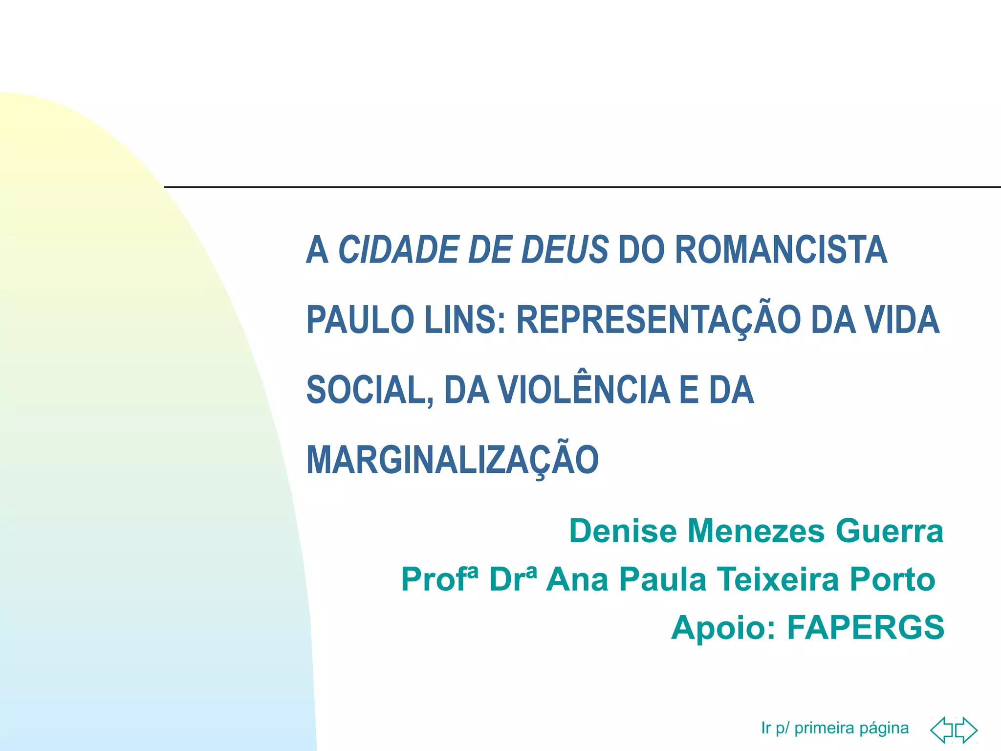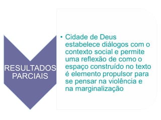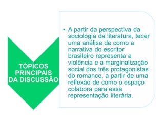 Esta dissertação analisa a representação da vida social, da violência e da marginalização na obra Cidade de Deus do escritor brasileiro Paulo Lins. A pesquisa é dividida em três capítulos que abordam a literatura brasileira e a sociedade, a violência urbana e a marginalização social na obra.