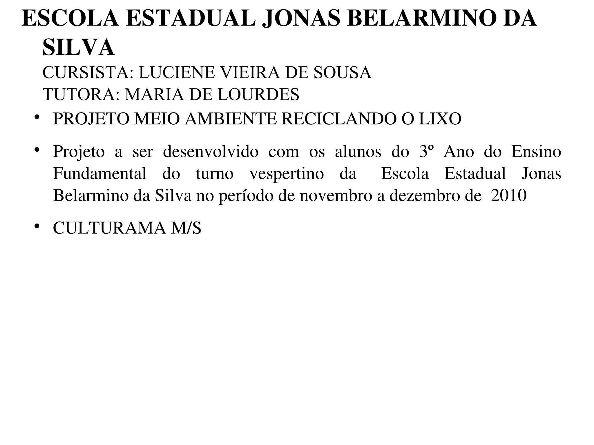 O projeto visa ensinar alunos do 3o ano sobre reciclagem de lixo através da construção de brinquedos e cartazes usando materiais recicláveis. Os objetivos são ensinar a importância da reciclagem, produzir brinquedos com lixo, confeccionar cartazes e valorizar brinquedos feitos de lixo reciclado. As atividades ocorrerão de novembro a dezembro e incluirão pesquisa, discussão e construção de itens em grupos.