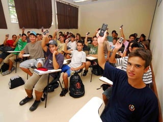 Este documento descreve um projeto de educação digital que usa celulares em sala de aula de forma didática. O projeto tem como objetivos agregar novas tecnologias como forma de engajar estudantes, usar a internet para pesquisa e explorar recursos de celulares e computadores. O projeto envolve a criação de um desenho animado sobre a vida de Machado de Assis usando fotos tiradas no celular e um programa de animação.
