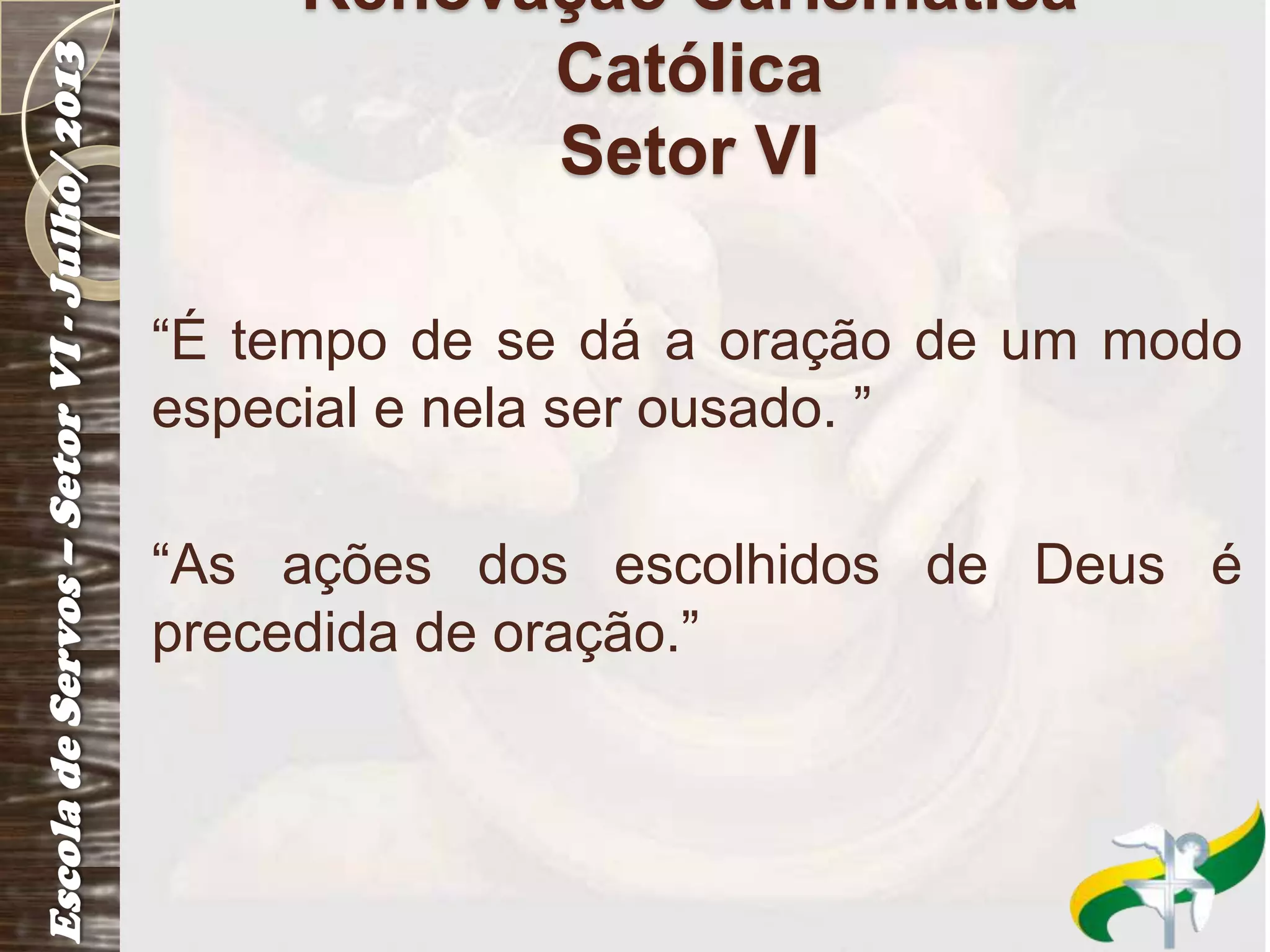 [1] O documento discute a Renovação Carismática Católica e enfatiza a importância da oração e do Espírito Santo. [2] Ele também fala sobre a equipe de serviço e núcleo de serviço de um Grupo de Oração, incluindo suas finalidades e como realizam o discernimento. [3] O texto encerra enfatizando que a equipe de serviço deve agir com ousadia após receber o Espírito Santo.