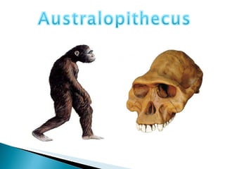 O documento discute a evolução humana desde os Australopithecus, listando três nomes de estudantes e fornecendo três links sobre biologia, evolução humana e genética.