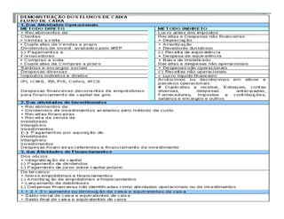 O documento discute os fundamentos da contabilidade financeira e empresarial. O professor apresenta as principais demonstrações contábeis como o Balanço Patrimonial, a Demonstração do Resultado do Exercício e a Demonstração dos Fluxos de Caixa, explicando o objetivo e estrutura de cada uma. Ele também analisa outros conceitos contábeis como o valor adicionado e as notas explicativas.