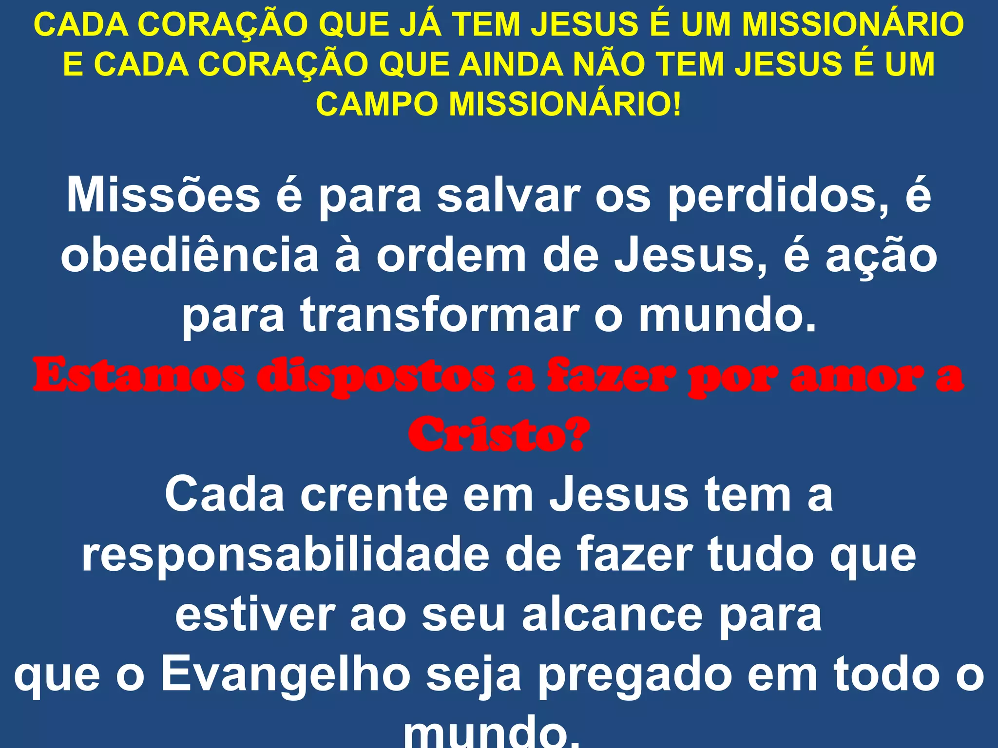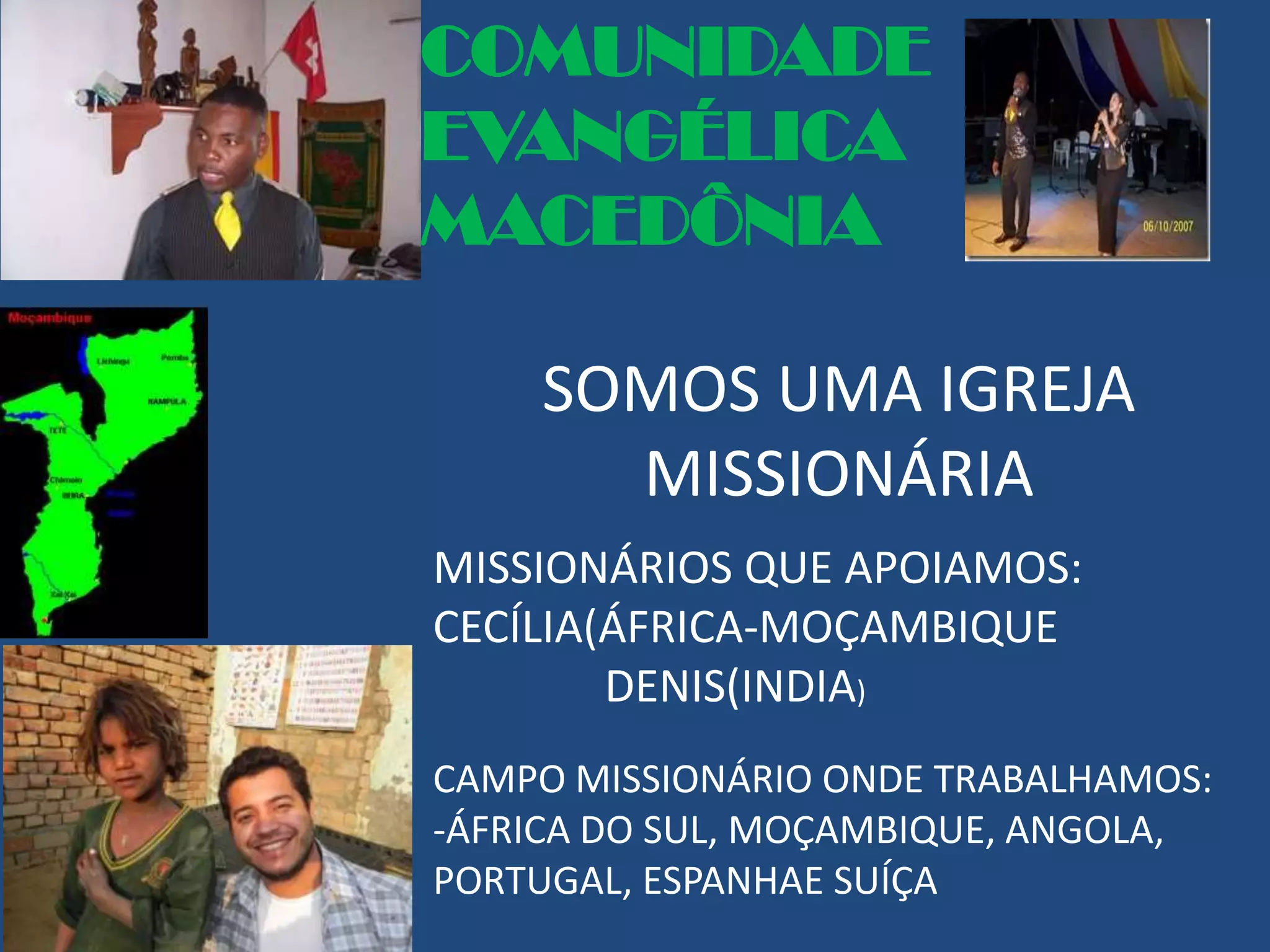 O documento discute a importância das missões cristãs para salvar os perdidos e obedecer a ordem de Jesus de espalhar o Evangelho. Ele enfatiza que cada crente tem a responsabilidade de fazer sua parte para alcançar aqueles que ainda não conhecem Cristo. A comunidade evangélica Macedônia apoia missionários em países como Moçambique, Índia, África do Sul e ajuda a fundar igrejas em locais ainda não alcançados pelo Evangelho.