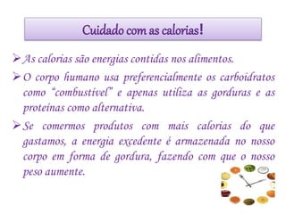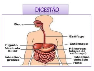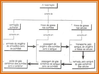 O documento discute os sistemas digestório, respiratório e excretor do corpo humano. O sistema digestório transforma os alimentos em nutrientes. O sistema respiratório fornece oxigênio para transformar os alimentos em energia através da respiração. O sistema excretor remove substâncias tóxicas do corpo por meio da urina e das fezes.