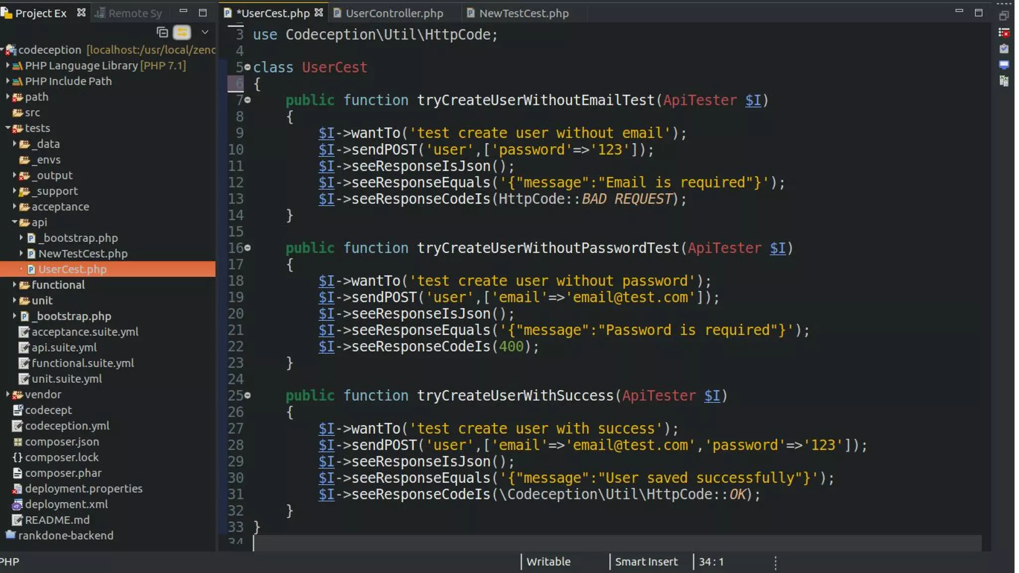 Este documento discute testes automatizados de API com o framework Codeception. Ele apresenta porque fazer testes de API, o que é o Codeception, como instalá-lo e criar testes de API, e como executar os testes para validar respostas de requisições e garantir que as APIs funcionam conforme o esperado.