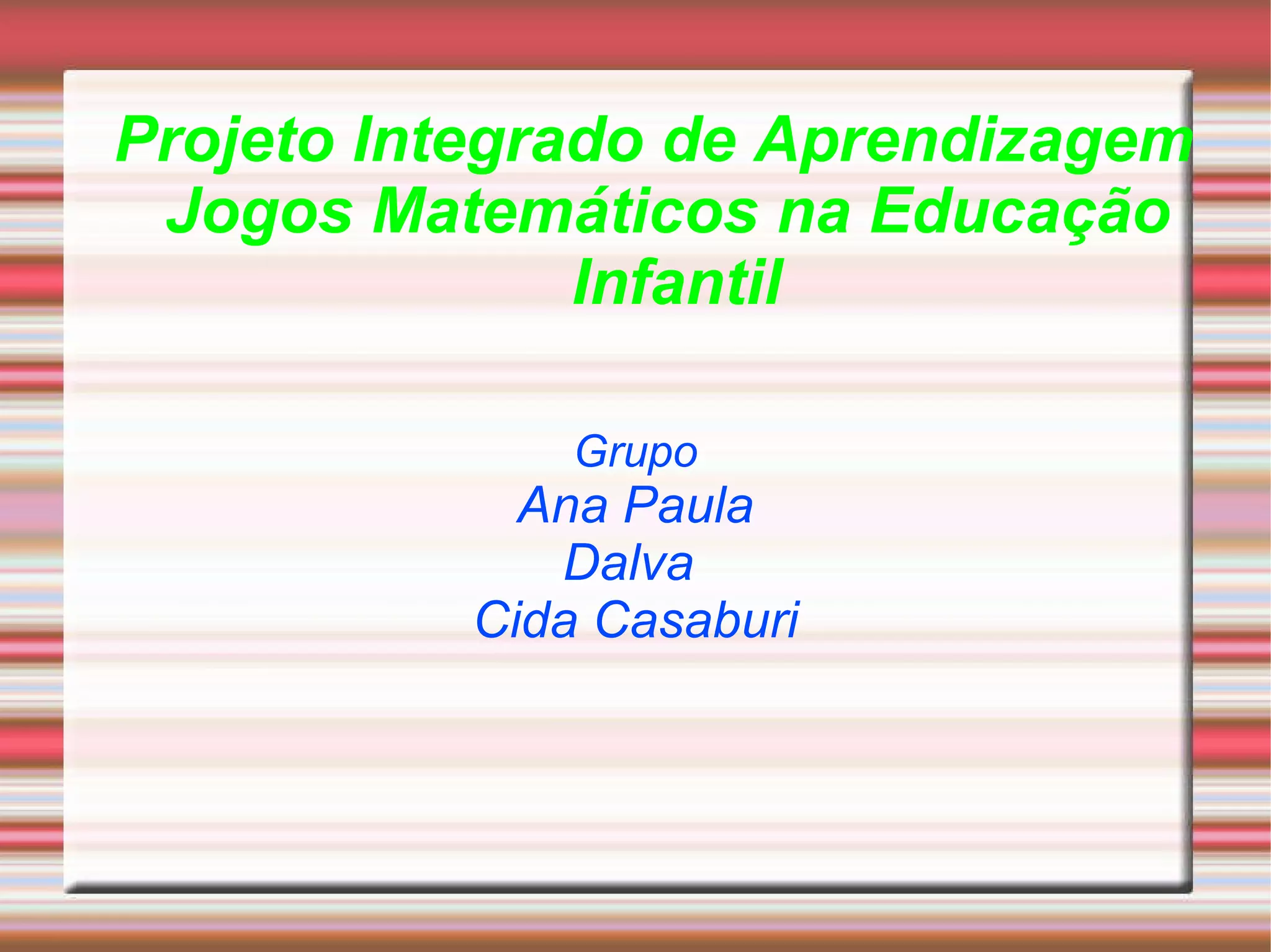O documento discute a importância dos jogos matemáticos na educação infantil para desenvolver habilidades como raciocínio lógico, socialização e representação de quantidades. Ele apresenta exemplos de jogos como Tangram, Dominó e Jogo da Memória e argumenta que os jogos tornam a aprendizagem divertida se o professor planejar os objetivos de aprendizagem.