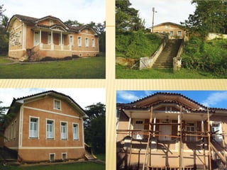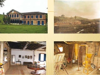 O documento discute a importância do patrimônio cultural, como fazendas históricas na região de Noroeste Fluminense no Brasil preservam a história. Duas fazendas específicas são destacadas: a Fazenda Santa Inês, fundada no século XIX e conhecida por sua produção agrícola, e a Fazenda Santa Justa, também fundada no século XIX e importante para a economia local.