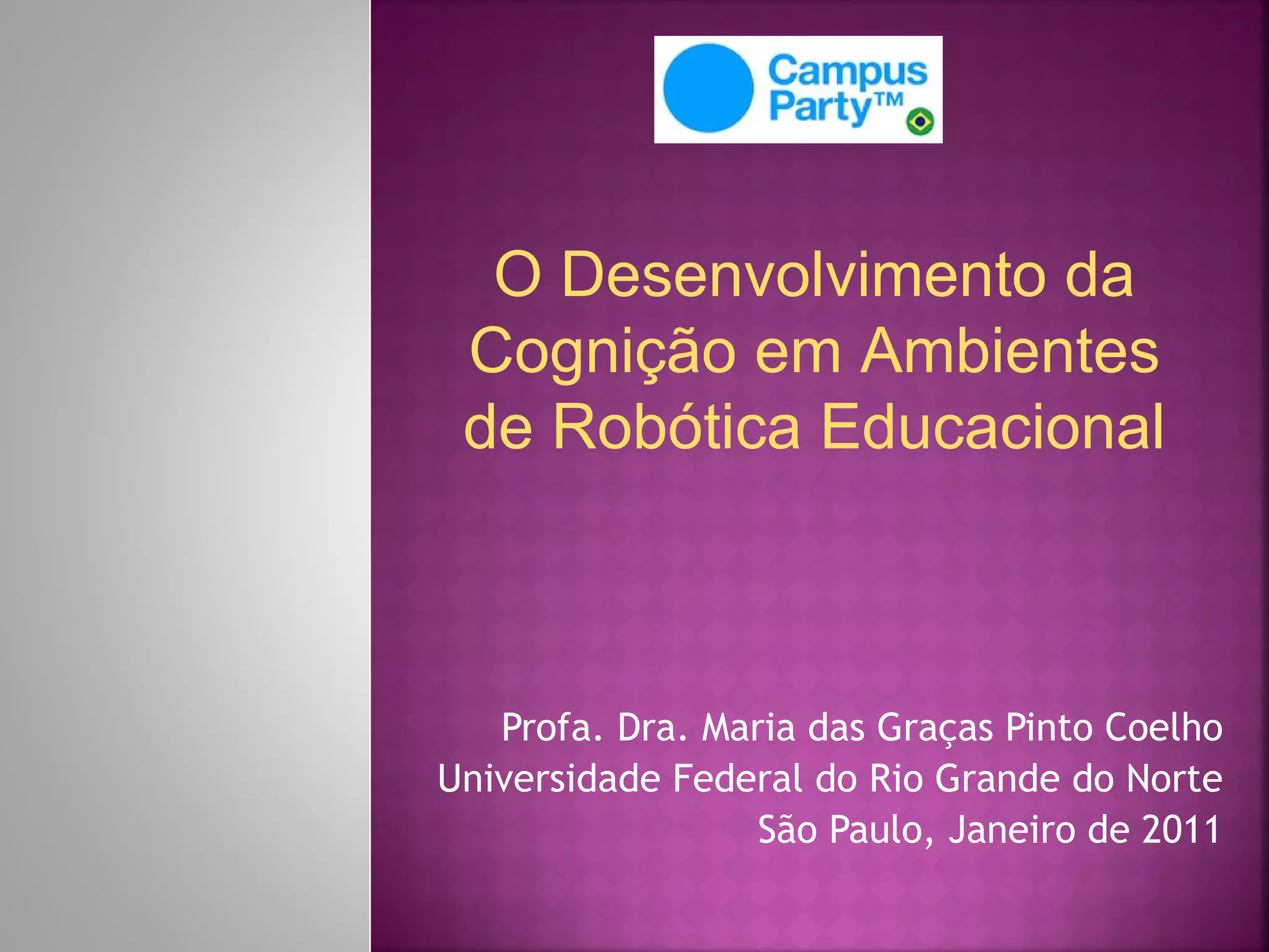 O documento discute como a robótica educacional pode contribuir para o desenvolvimento cognitivo dos estudantes em três frases: 1) A robótica educacional pode proporcionar aprendizagens vividas e compartilhadas sobre mecatrônica e programação; 2) Ela permite que os estudantes desenvolvam protótipos para resolver problemas reais e estimula a criatividade, o raciocínio lógico e a imaginação; 3) A robótica ajuda a preparar os estudantes para o mercado de trabalho baseado no conhecimento, despertando habil