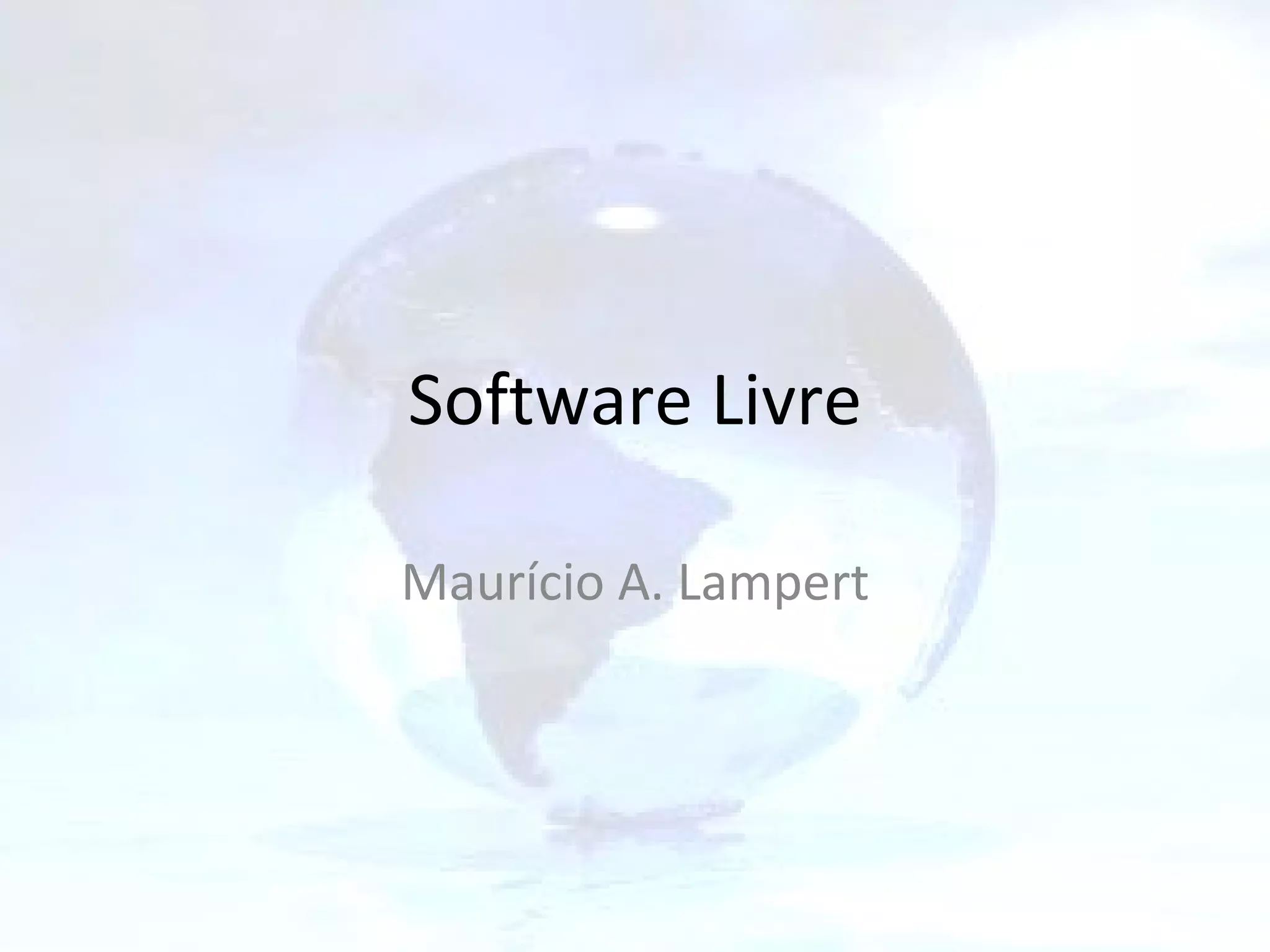 O documento descreve o início do movimento de software livre em 1983 com o Projeto GNU e a Free Software Foundation. Defini que software livre garante quatro tipos de liberdade aos usuários: executar, estudar, redistribuir e aperfeiçoar o programa. Acesso ao código-fonte é necessário para as liberdades de estudar e aperfeiçoar. Redistribuição deve incluir tanto código-fonte quanto versões binárias. Acesso ao código-fonte é essencial para permitir melhorias no software.