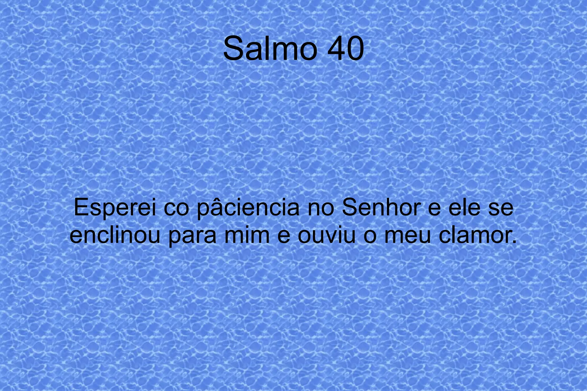 O salmo 40 fala sobre esperar pacientemente no Senhor e ele ouvir o clamor da pessoa. Provérbios diz que uma mulher sábia constrói sua casa e que quem quer tudo não consegue nada, e também que vingança deve ser servida fria.