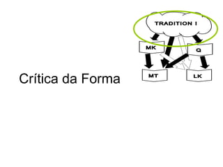 1) A Crítica da Forma analisa os materiais orais para identificar formas literárias e reconstruir versões primitivas.
