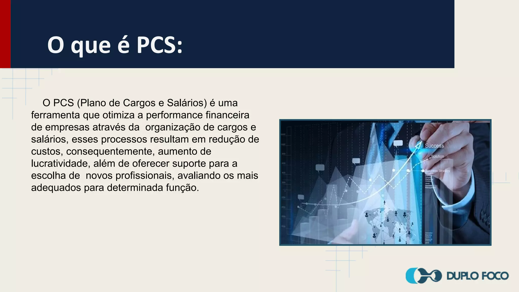 O Plano de Cargos e Salários (PCS) é uma ferramenta que organiza cargos e salários, contribuindo para a redução de custos e aumento da lucratividade nas empresas. Ele define descrições de cargos, avalia a produtividade dos colaboradores e estabelece uma hierarquia salarial, promovendo reconhecimento e crescimento profissional. O PCS serve como um orientador na tomada de decisões, permitindo ajustes conforme a dinâmica empresarial.