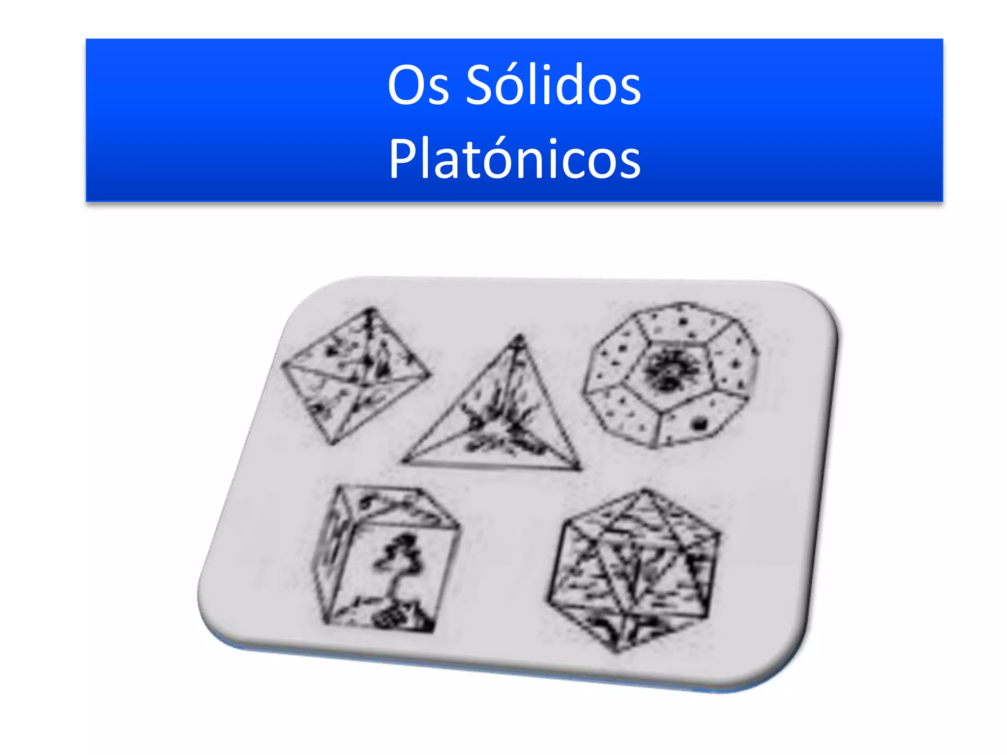 • Os sólidos platónicos são 5. Aqui estão eles: