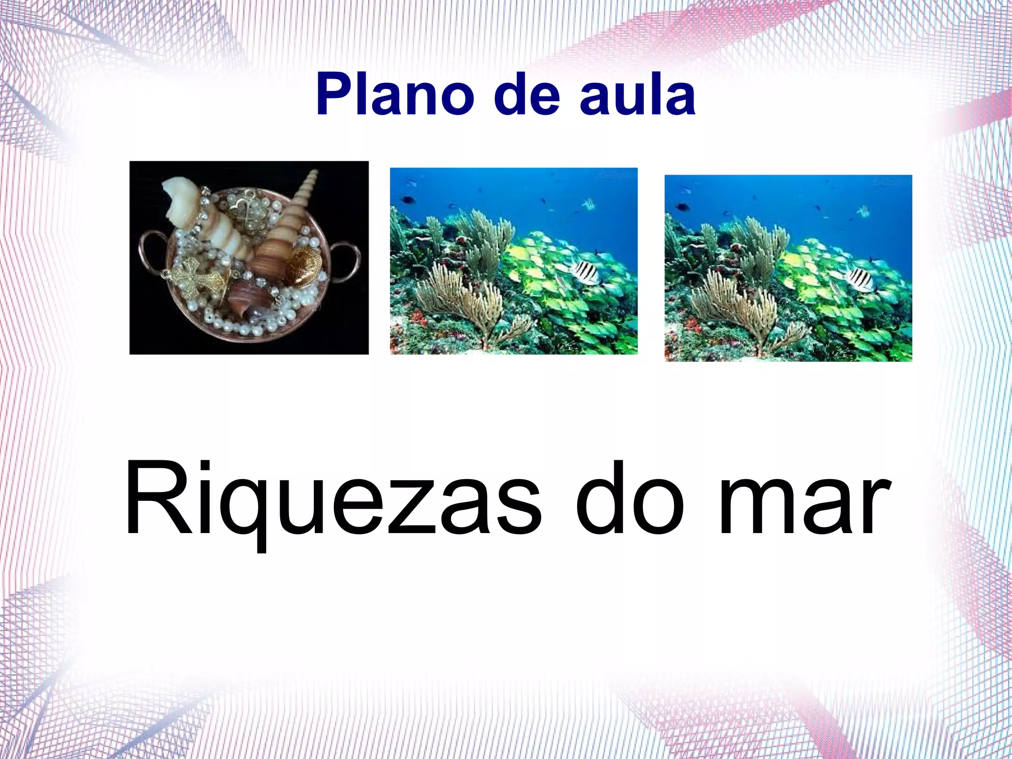 O plano de aula apresenta atividades sobre as riquezas do mar para alunos do 5o ano durante 3 aulas. As atividades incluem pesquisas sobre as zonas marinhas, a diversidade da vida no mar e por que é mais fácil flutuar no mar do que na piscina. As atividades serão realizadas em duplas utilizando vídeos, leituras e experiências científicas.