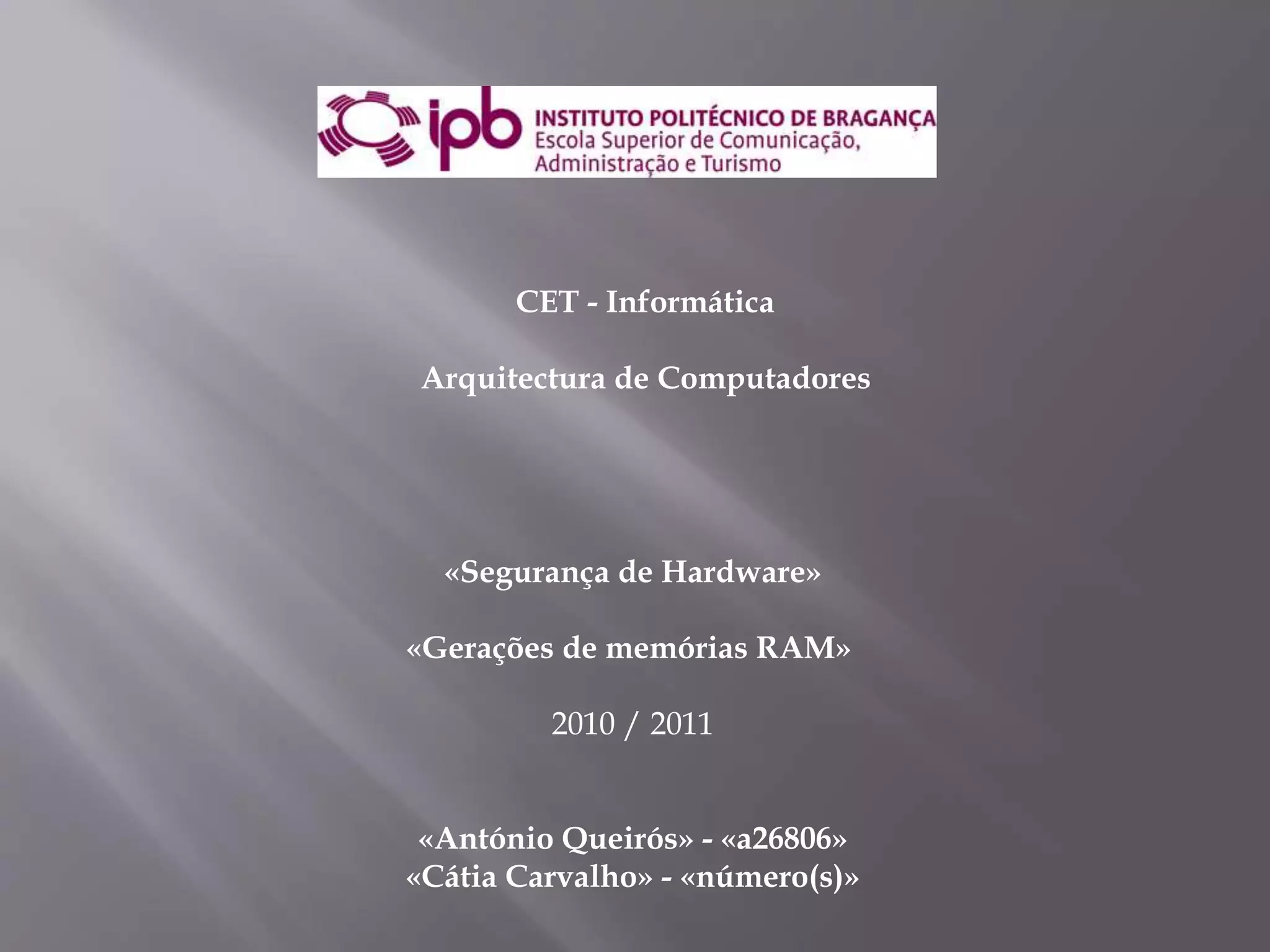O documento discute a evolução da memória RAM ao longo do tempo, passando por diferentes gerações como FPM RAM, DRAM, EDO RAM, SDRAM, DDR SDRAM, DDR2 SDRAM, DDR3 SDRAM. Cada geração trouxe melhorias em desempenho e taxa de transferência de dados em relação à geração anterior. O documento também discute procedimentos de segurança ao lidar com hardware e componentes de computadores.