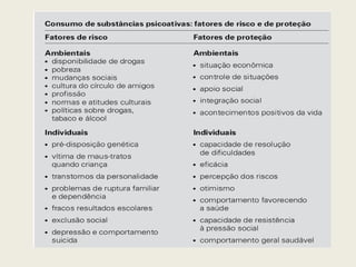 Este documento discute o consumo de "smart drugs" ou drogas psicoativas para aumentar o desempenho cognitivo. Apresenta vários tipos de substâncias que algumas pessoas acreditam ter esse efeito, como vitaminas, plantas, aminoácidos e fármacos prescritos. No entanto, enfatiza que não há evidências conclusivas de que essas substâncias sejam eficazes e seguras para esse fim, e que podem causar efeitos colaterais significativos.