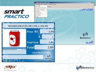 O documento apresenta os principais recursos do software Smart Practico para automação de PDV e gestão de estoque e fluxo financeiro de empresas varejistas, incluindo módulos para cadastros, vendas, comissões, legislação tributária, controle e movimentação de estoque, fluxo de caixa, rateios, contas a pagar e receber e suporte técnico.