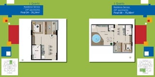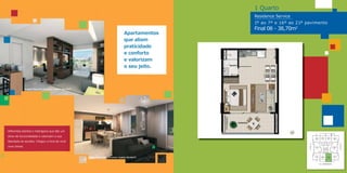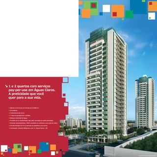 Este documento descreve um empreendimento imobiliário registrado no Distrito Federal. Ele informa que as ilustrações são sugestivas e não fazem parte do contrato, e que os detalhes constarão em outros documentos. Também alerta que medidas e vegetação podem variar na entrega final.