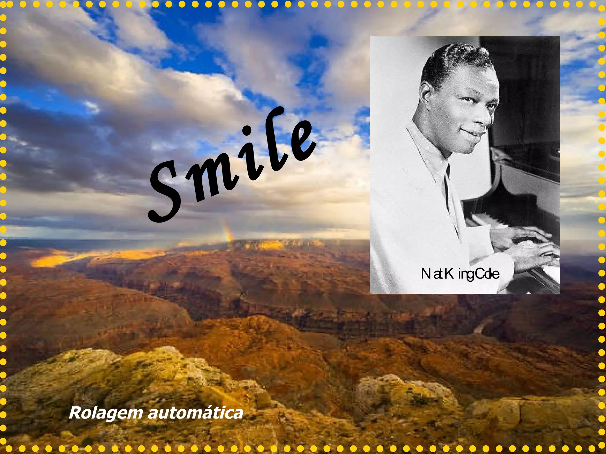 O documento é uma transcrição da letra da música "Smile" de Nat King Cole. A letra encoraja o leitor a continuar sorrindo mesmo quando estiver triste ou com medo, porque sorrir pode ajudar a superar os problemas e ver que a vida ainda vale a pena.