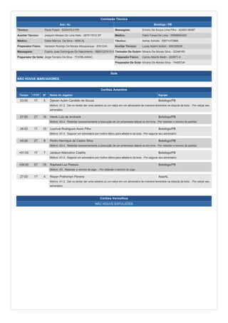 O jogo entre Asa/AL e Botafogo/PB terminou empatado em 0 a 0. Houve seis cartões amarelos distribuídos durante a partida, mas nenhum cartão vermelho. Aos 37 minutos do segundo tempo, a partida foi paralisada por seis minutos para atendimento médico ao jogador Ramalho, do Asa/AL.