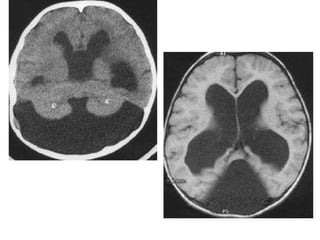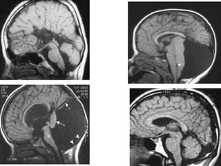 A Síndrome de Dandy-Walker é caracterizada por (1) hidrocefalia severa supratentorial, (2) dilatação cística do 4o ventrículo e (3) afastamento dos hemisférios cerebelares, geralmente causada por falha no desenvolvimento dos forames de Luschka e Magendie no 4o mês de gestação.
