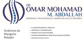 O documento aborda a síndrome do manguito rotador, incluindo a anatomia, biomecânica e os diferentes tipos de lesões relacionadas. Detalha ainda a etiopatogenia do problema, classificações de lesões e métodos de diagnóstico, além de opções de tratamento conservador e cirúrgico. Testes clínicos específicos são descritos para avaliar a condição do ombro e a identificação de lesões nos tendões.
