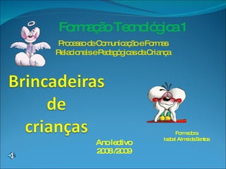 Ano lectivo 2008/2009 Processo de Comunicação e Formas Relacionais e Pedagógicas da Criança Formação Tecnológica 1 Formadora Isabel Almeida Santos