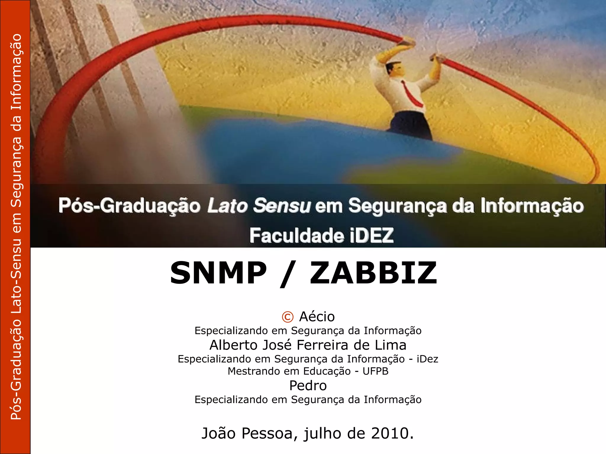 O documento aborda a pós-graduação lato-sensu em segurança da informação, enfocando a gestão e monitoramento de redes usando as ferramentas SNMP e Zabbix. Discute vulnerabilidades associadas ao SNMP, incluindo ataques possíveis e medidas de mitigação. O curso visa capacitar os alunos na identificação e resolução de problemas de segurança e desempenho em redes computacionais.