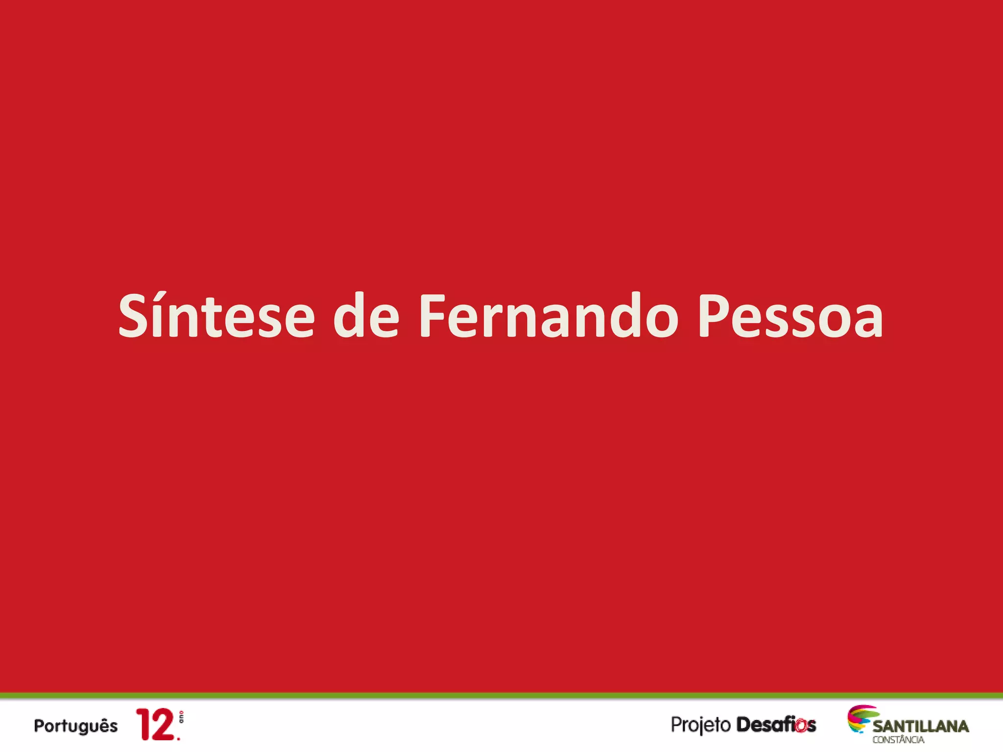 Este documento fornece informações biográficas sobre o poeta português Fernando Pessoa. Ele descreve sua vida, educação, obras publicadas, ideologia política e posição religiosa. Também discute a origem de seus heterônimos, incluindo Alberto Caeiro, Ricardo Reis e Álvaro de Campos.