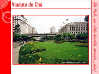 Este documento descreve a história da fundação da cidade de São Paulo no século XVI. Em 1554, o padre jesuíta José de Anchieta fundou uma dependência no local para servir de alojamento e colégio para catequização dos índios, estabelecendo assim a cidade de São Paulo.