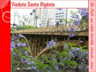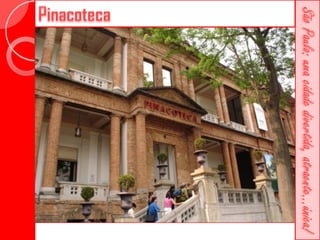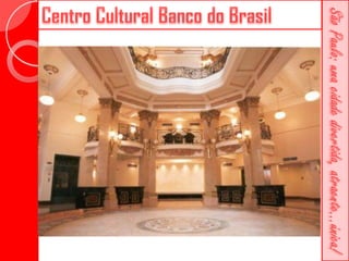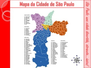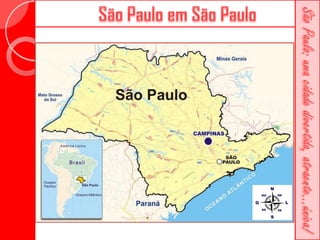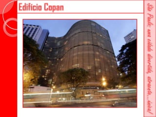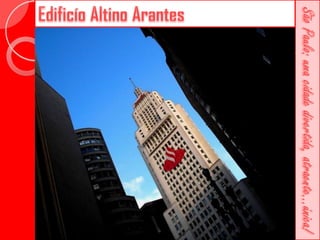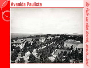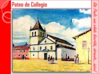 Este documento descreve a história da cidade de São Paulo desde sua fundação em 1554 pelo Padre José de Anchieta. Detalha importantes marcos como a construção da Catedral da Sé no século XVI, a criação da primeira faculdade de direito do Brasil no século XIX e vários prédios históricos erguidos ao longo dos séculos como o Teatro Municipal e o Edifício Martinelli.