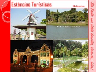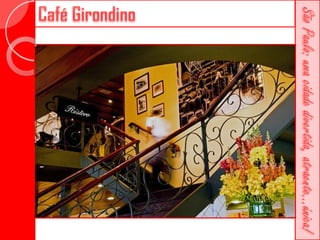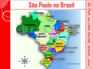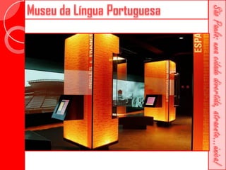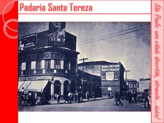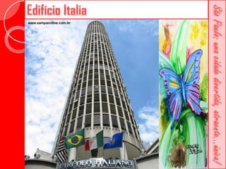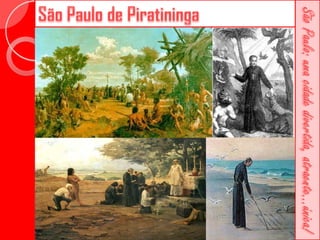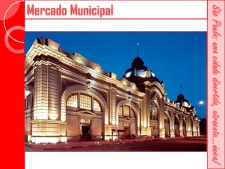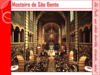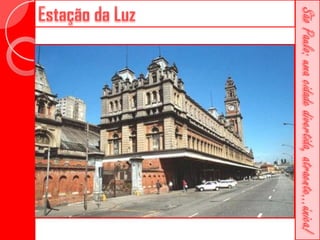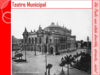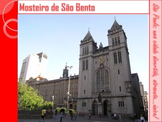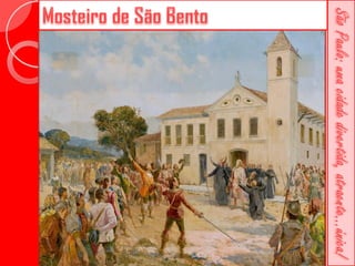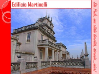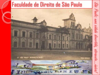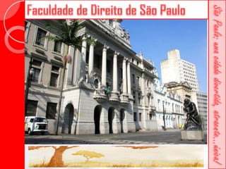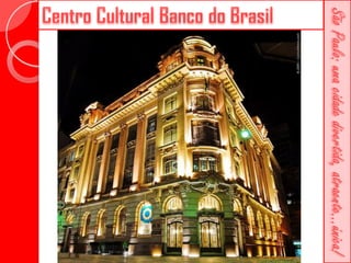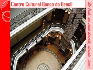Este documento descreve a história da cidade de São Paulo desde sua fundação em 1554 pelo Padre José de Anchieta. Detalha importantes construções ao longo dos séculos, como a Catedral da Sé, o Viaduto do Chá, o Edifício Martinelli e o Teatro Municipal. Também menciona locais culturais atuais como o CCBB e a Estação da Luz.