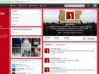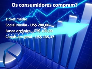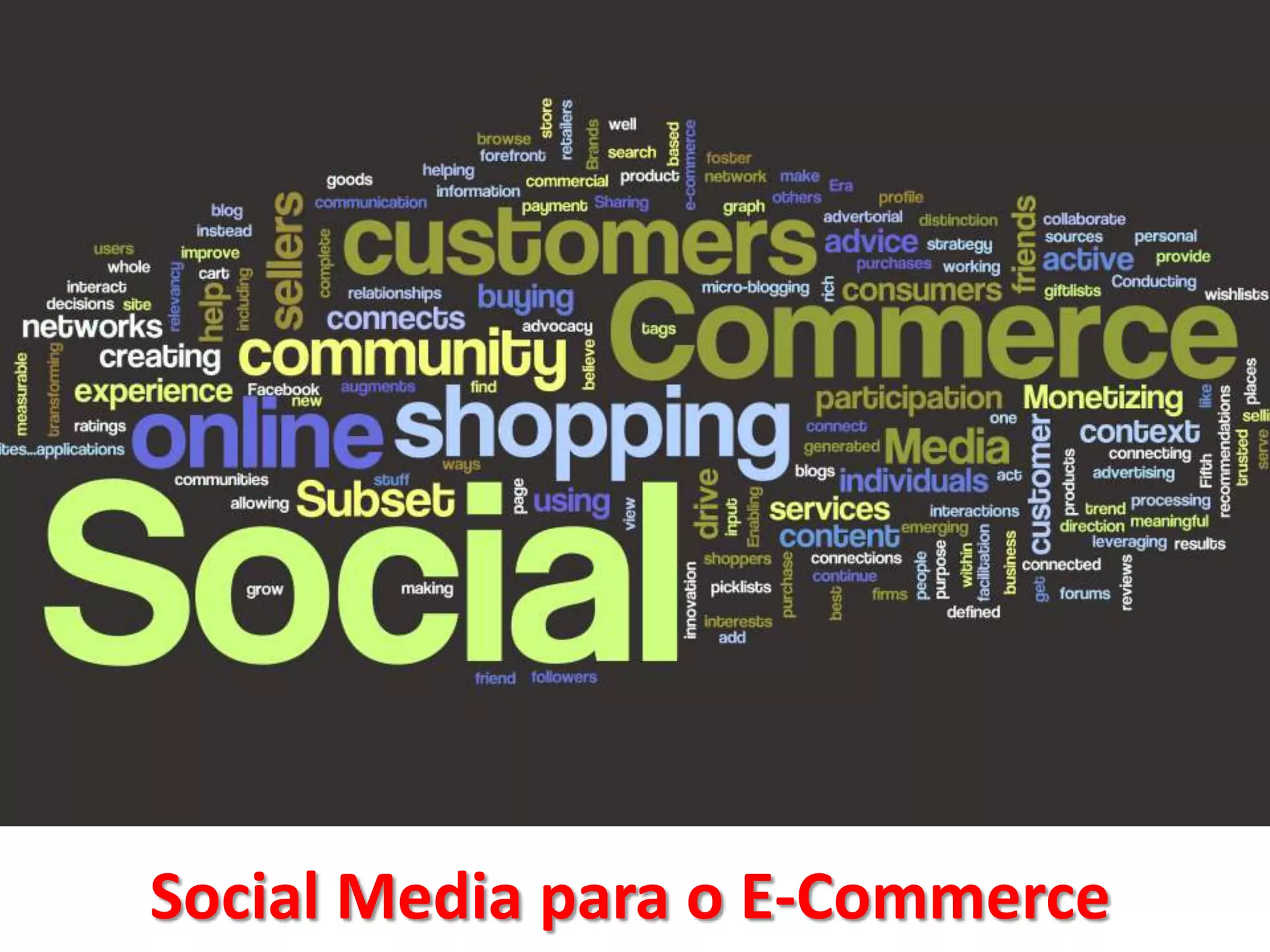 O documento discute o uso das mídias sociais para o e-commerce. Ele explica o que são mídias sociais e como elas podem ser usadas como canais de comunicação, distribuição e geração de receitas para empresas. Além disso, aborda como o social commerce pode aproveitar as interações sociais para apoiar a compra e venda de produtos online.