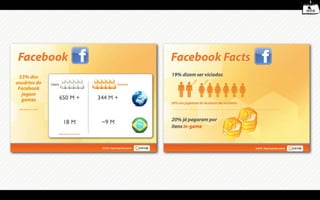 O documento discute como princípios de jogos podem ser aplicados para engajar consumidores. Cerca de 450 milhões de pessoas jogam regularmente e gastam bilhões de horas por semana em atividades relacionadas a jogos. Uma abordagem inspirada em jogos pode proporcionar experiências mais envolventes do que interfaces planas e sérias, aproveitando princípios como desafio, alegria e fluxo para engajar consumidores.