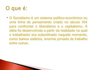 O documento resume os principais pontos sobre o socialismo: