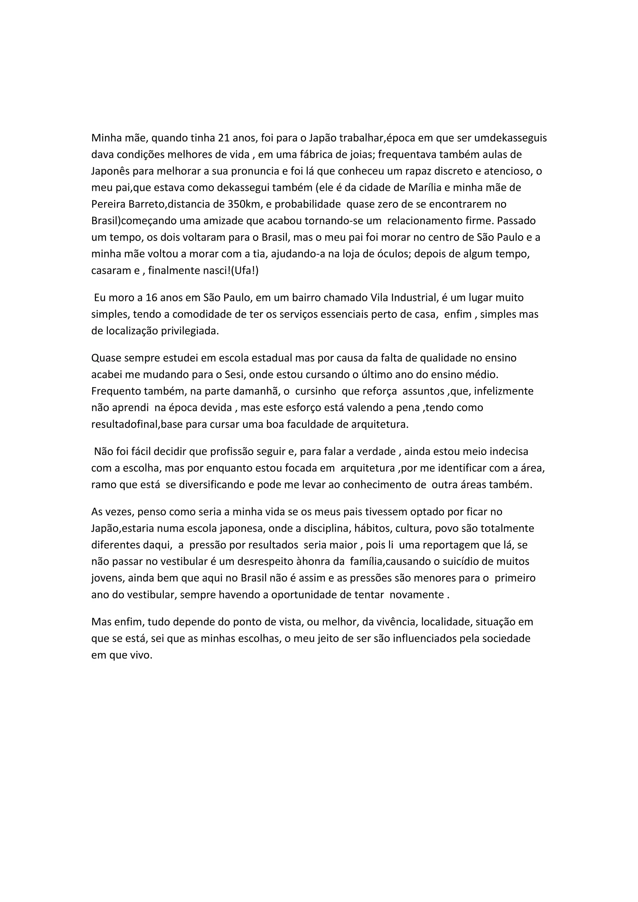 A mãe do autor foi para o Japão trabalhar em uma fábrica de joias onde conheceu o pai. Eles voltaram para o Brasil e se casaram. O autor mora em São Paulo e estuda arquitetura, apesar de ter considerado como seria sua vida se tivesse crescido no Japão.