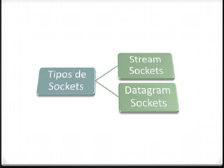 Socket é um mecanismo de comunicação entre processos em máquinas diferentes, permitindo troca de mensagens. Surge no Unix BSD nos anos 70-80. Existem sockets TCP e UDP, com TCP fornecendo garantia na entrega e UDP sendo mais simples. Sockets permitem comunicação entre clientes e servidores.