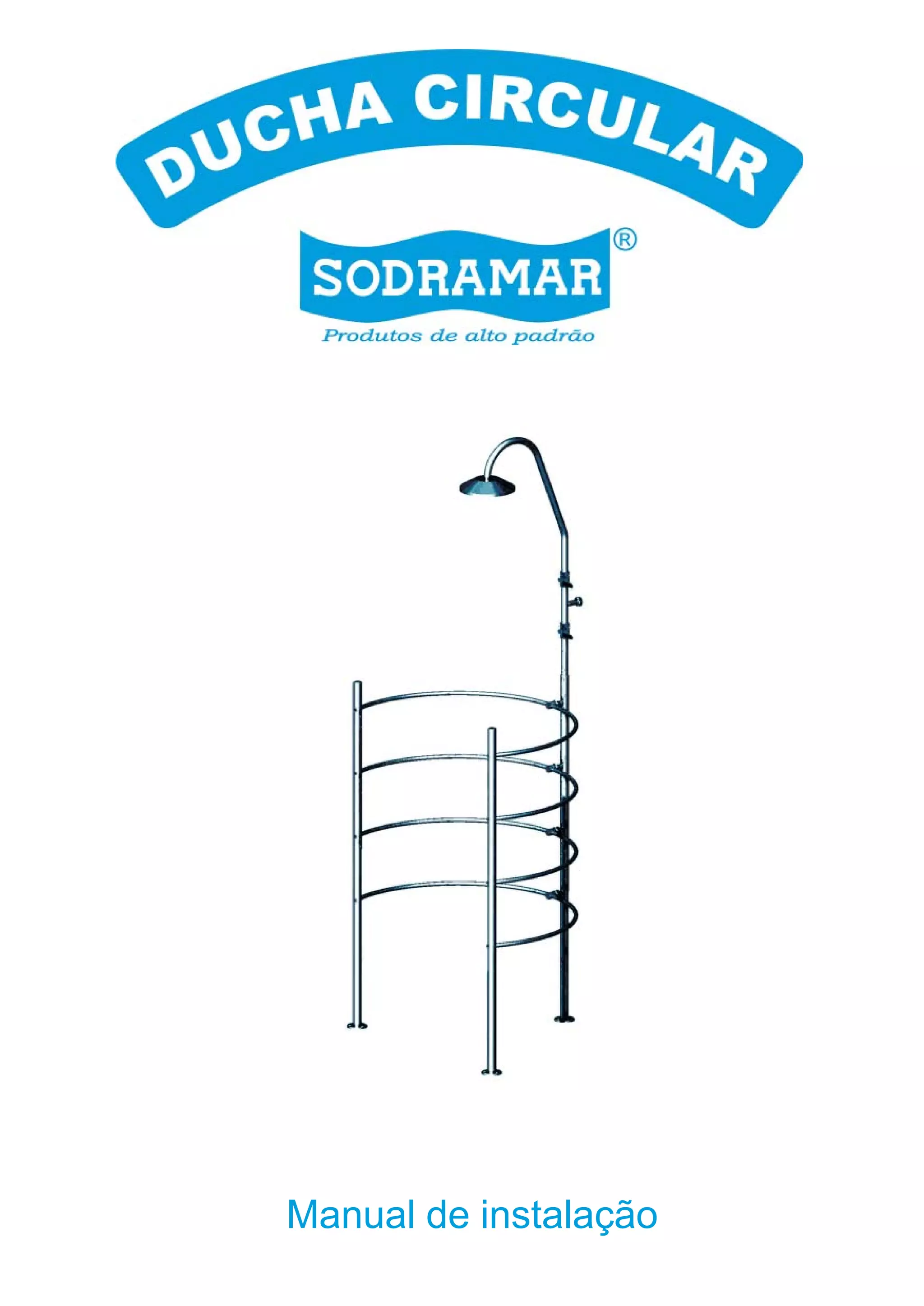 O documento fornece instruções para instalação de uma ducha circular Sodramar, descrevendo os componentes necessários, os passos da instalação e fornecendo especificações técnicas e informações sobre garantia.